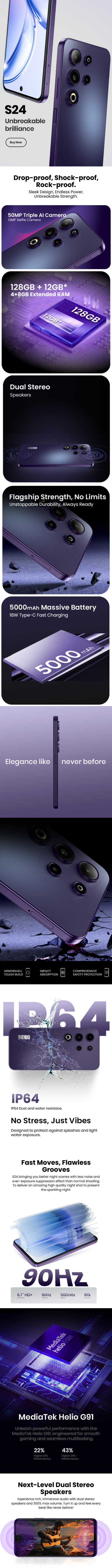 The SEGO S24 is built to deliver a premium all-round experience with a perfect balance of performance, style, and efficiency. Featuring a 6.7" HD+ display, it provides immersive visuals with vibrant clarity, ideal for streaming, gaming, and browsing. Powered by the MediaTek Helio G91 chipset, this device ensures smooth multitasking and responsive app performance.