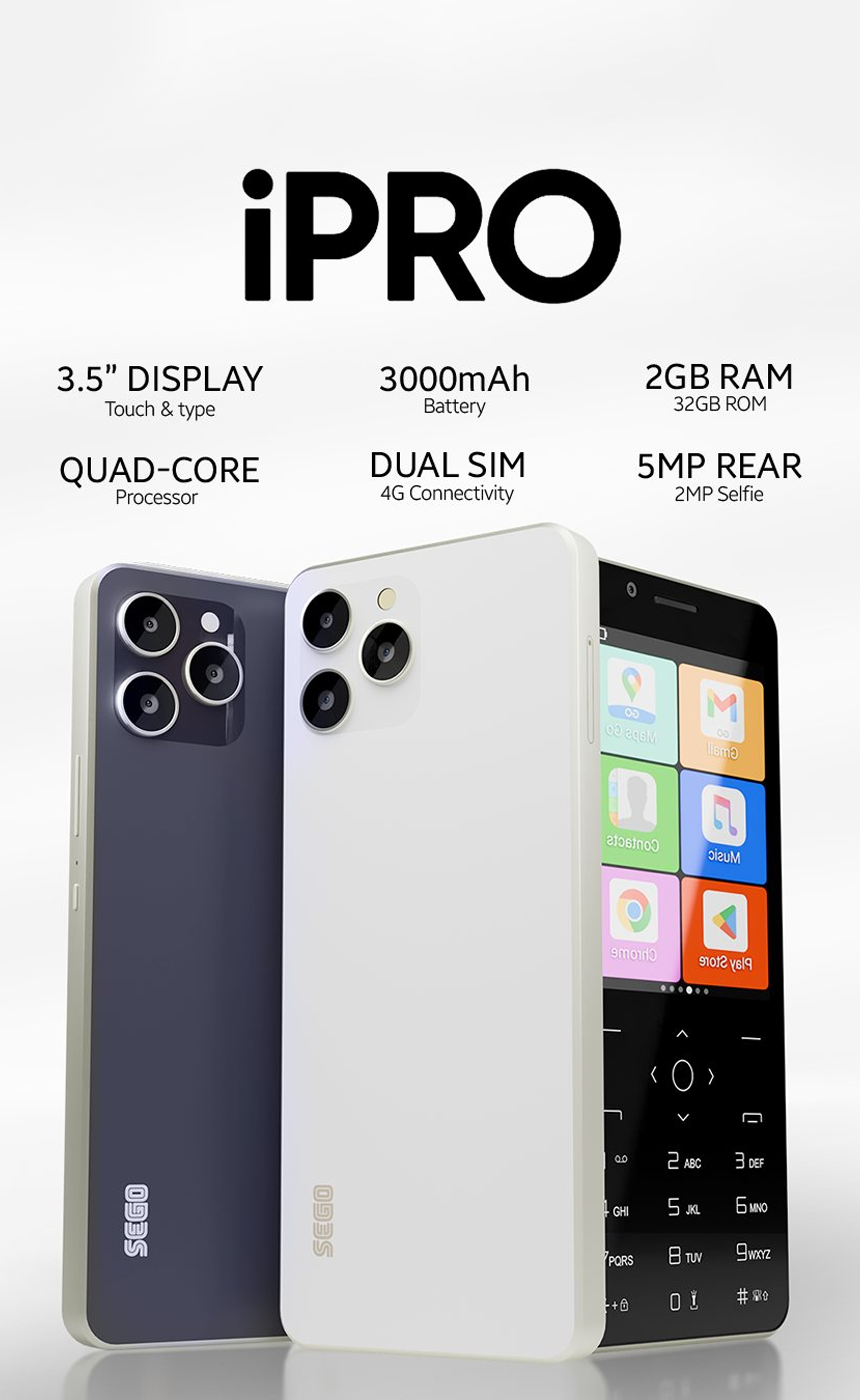 Equipped with a powerful 3000mAh battery, the SEGO iPro provides long-lasting performance to keep you connected throughout the day. Designed for reliability and practicality, this smartphone is an excellent choice for those seeking a compact yet capable mobile device.