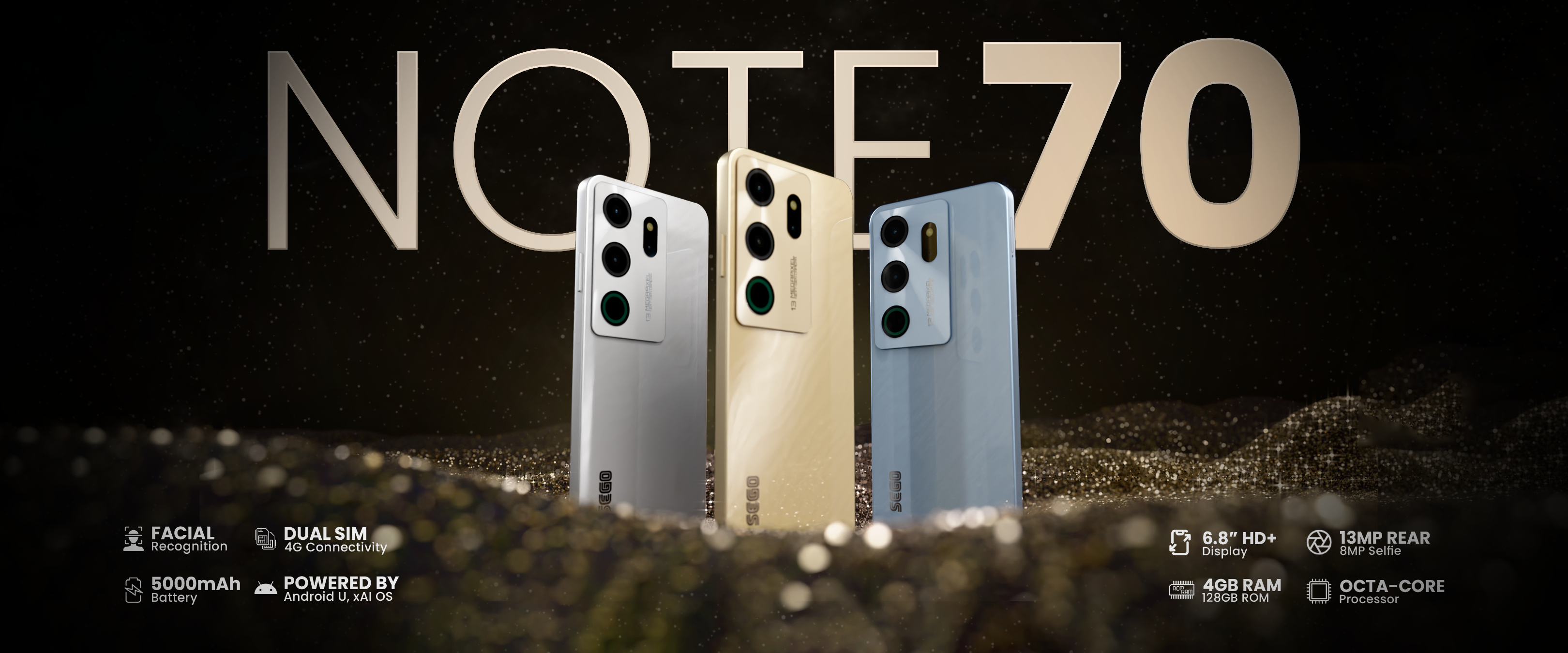 Capture life's moments in stunning detail with the 13MP Triple camera and snap vibrant selfies with the 8MP front camera. Equipped with a massive 5000mAh battery and the Note 70 keeps you connected all day with minimal charging interruptions.