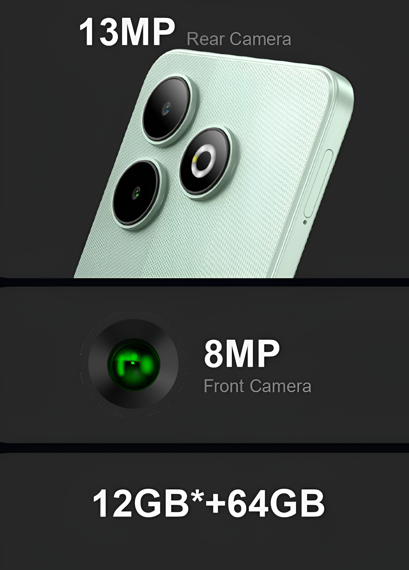Capture memories with the 13MP+VGA Dual rear camera and enjoy sharp selfies with the 8MP front camera. With RAM (4 + 8GB Extended) and 64GB storage, there's space for your apps and files. The 5000mAh battery with Type-C charging keeps you powered throughout the day. The SEGO Smart 10 Play is a practical companion for your daily needs.