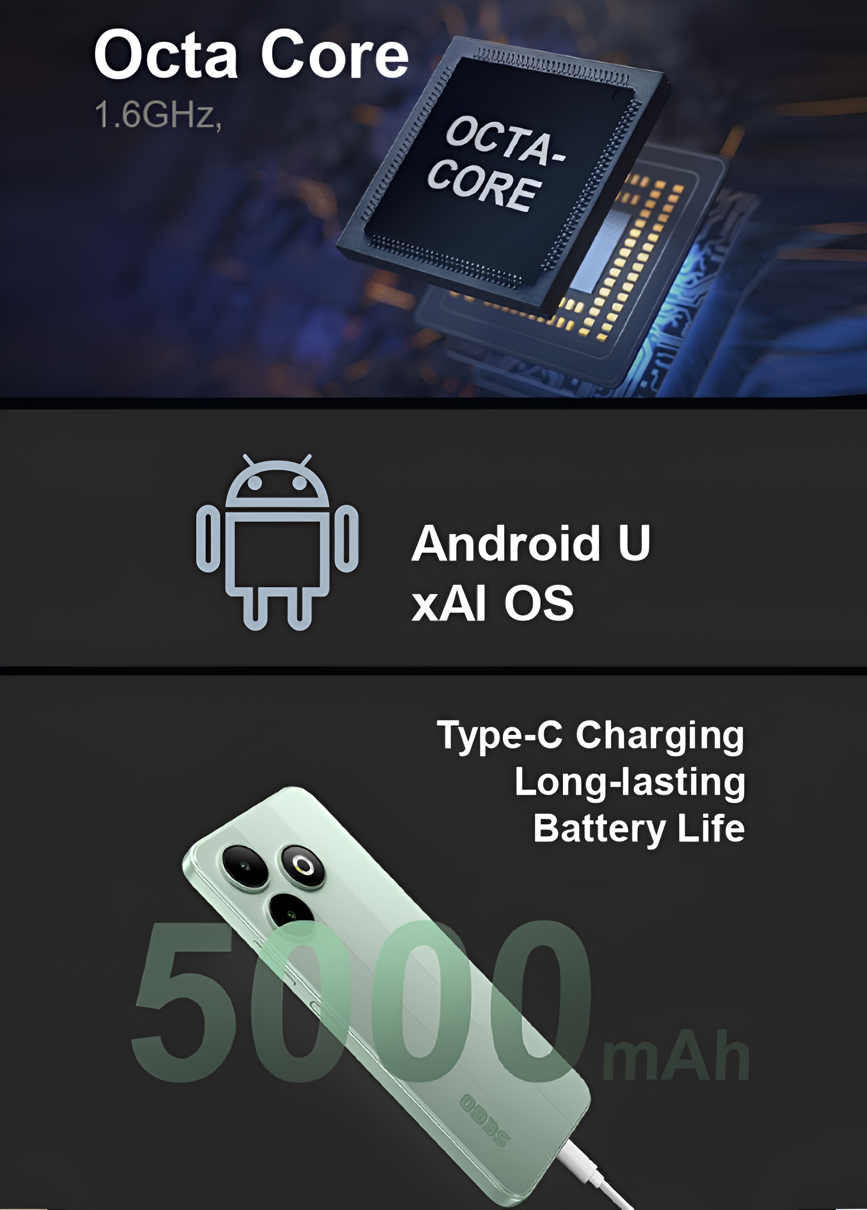The SEGO Smart 10 Play offers reliable performance and essential features in a sleek design. Its 6.6" HD+ waterdrop display ensures clear and vibrant visuals, perfect for everyday use. Powered by the SC9863A1 1.6GHz Octa Core processor, it handles tasks smoothly, while Android U enhances usability.