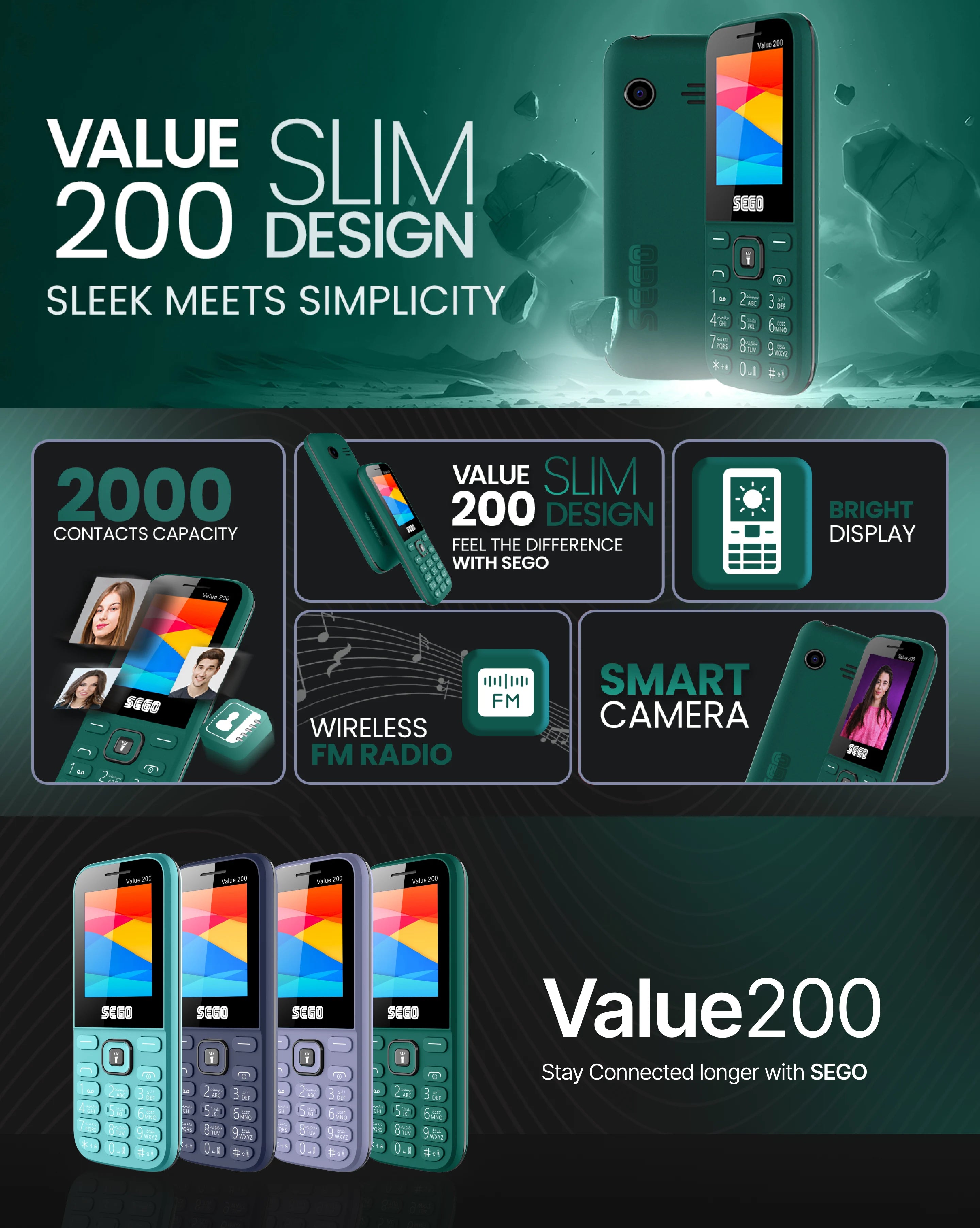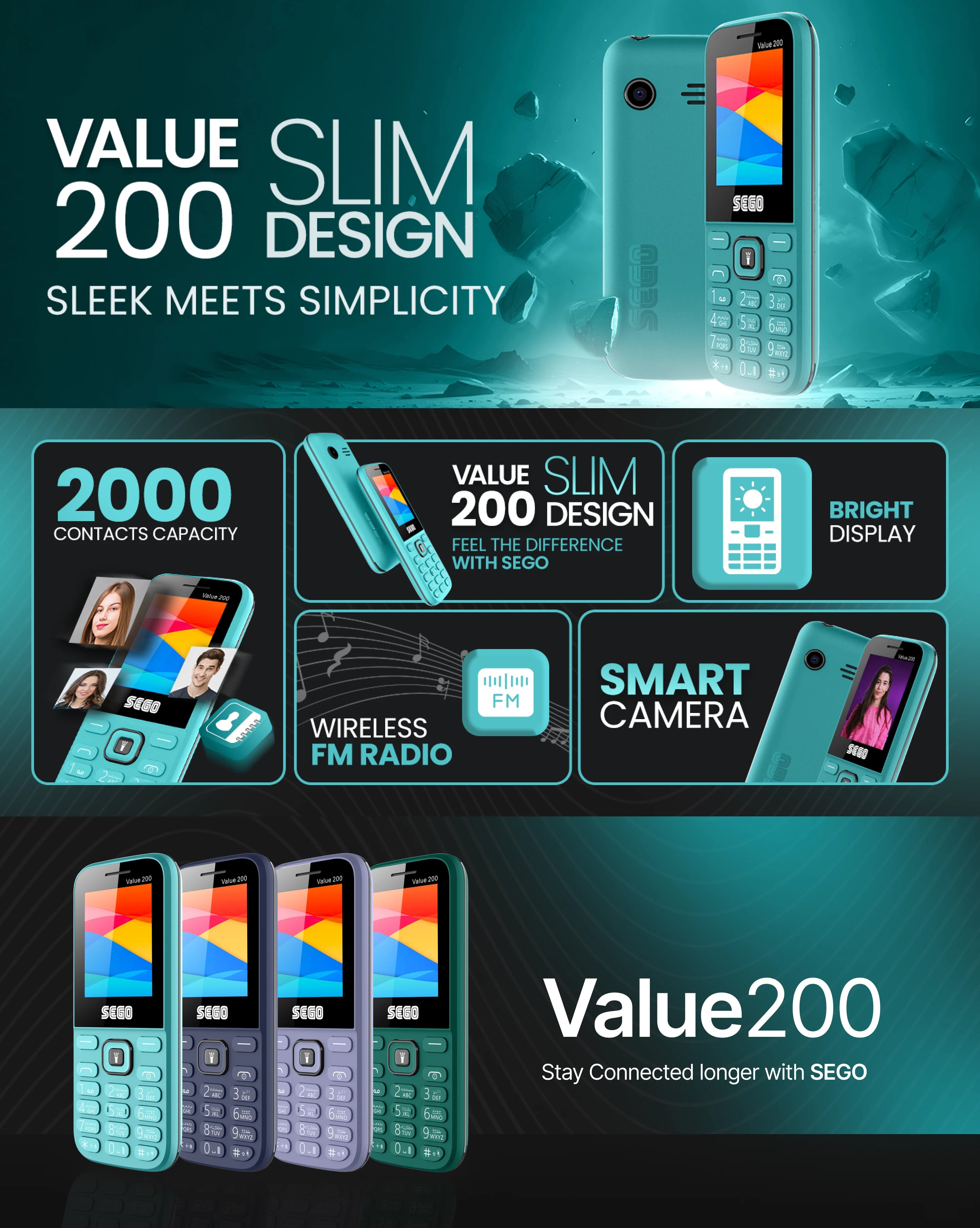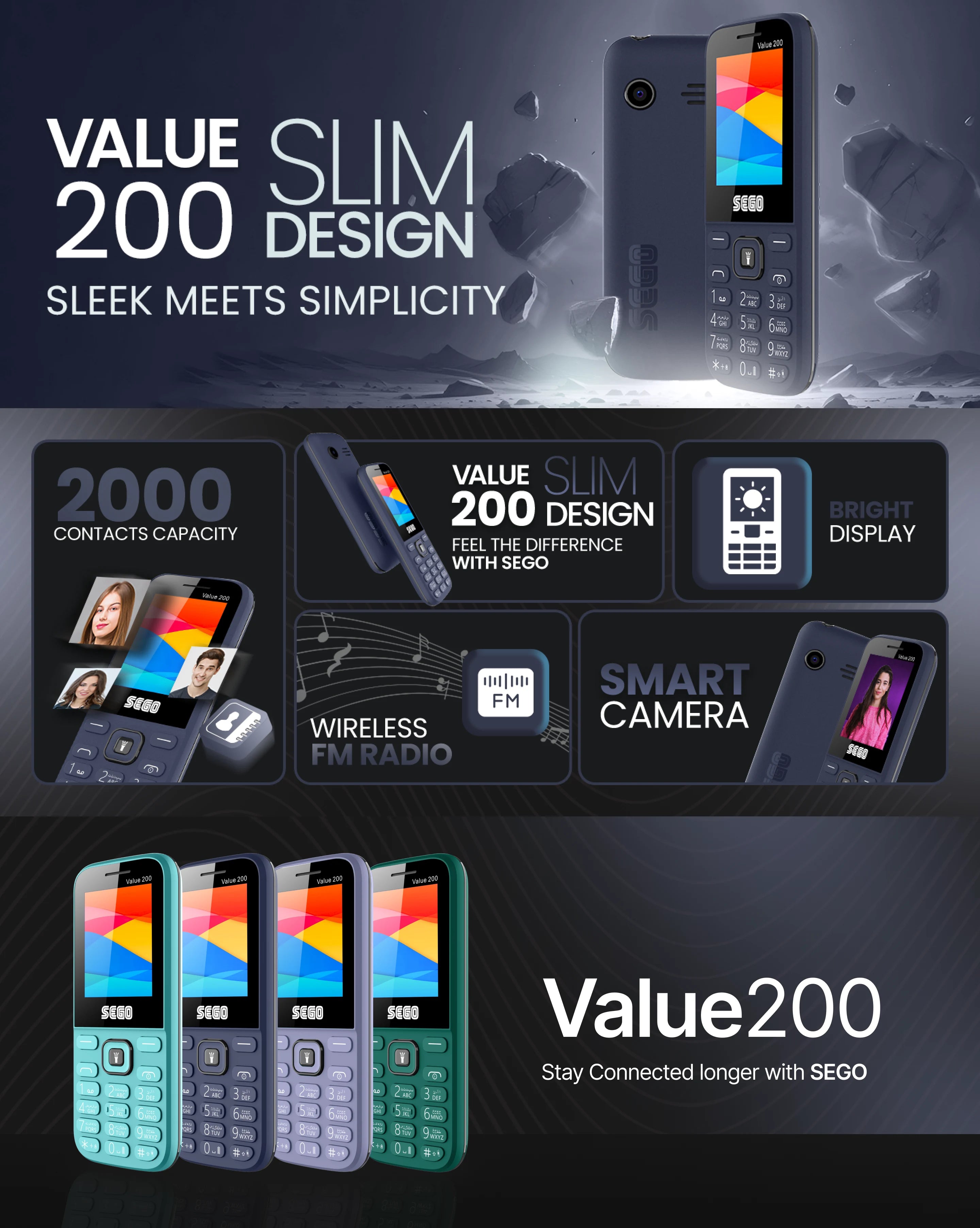 Lightweight and portable, the SEGO Value 200 fits comfortably in your hand or pocket. Its powerful speaker delivers crisp and clear sound, enhancing your calls and entertainment experience.