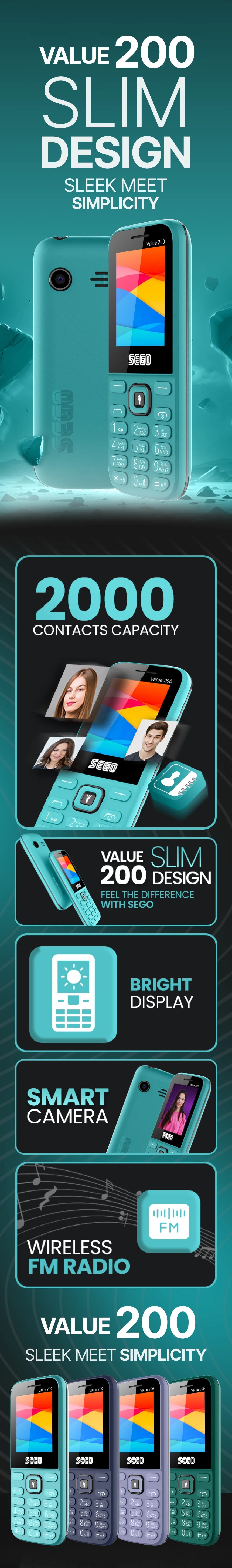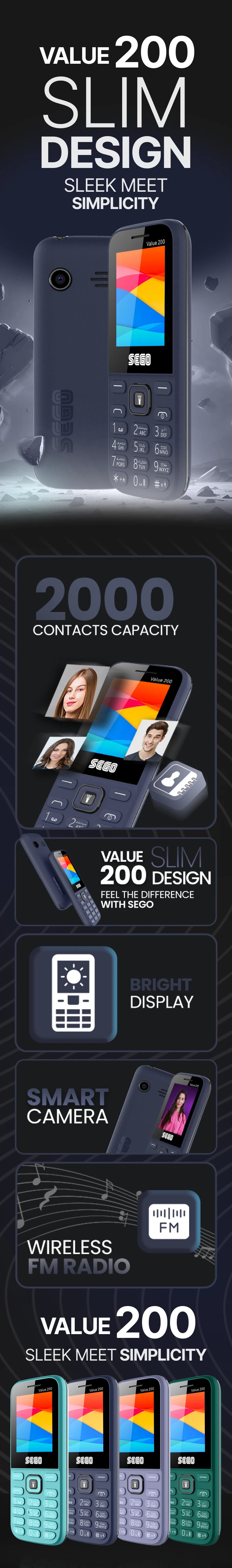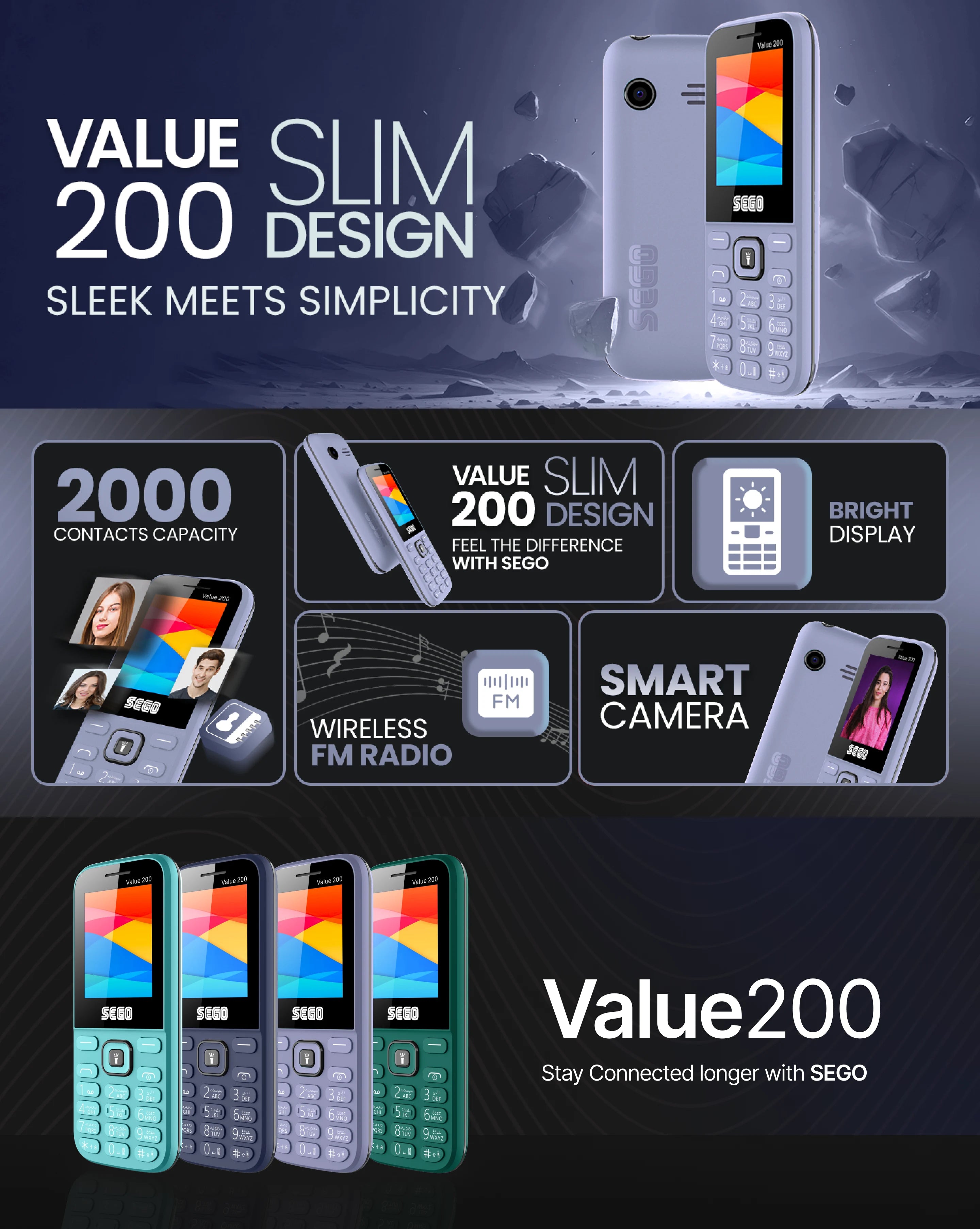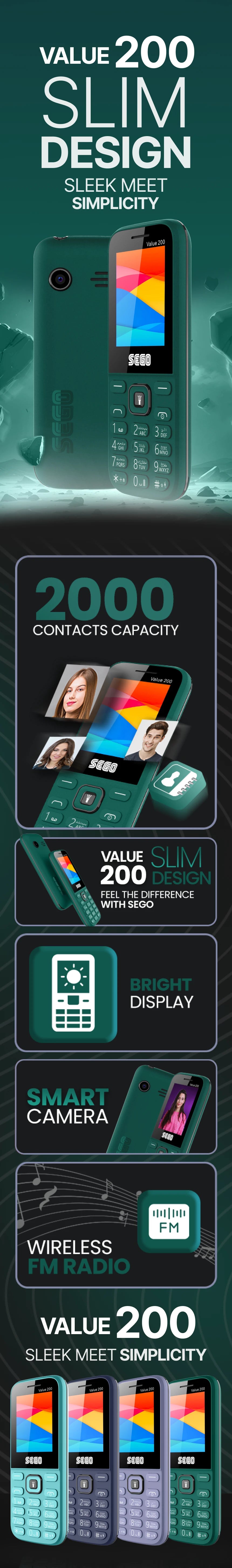 Lightweight and portable, the SEGO Value 200 fits comfortably in your hand or pocket. Its powerful speaker delivers crisp and clear sound, enhancing your calls and entertainment experience.